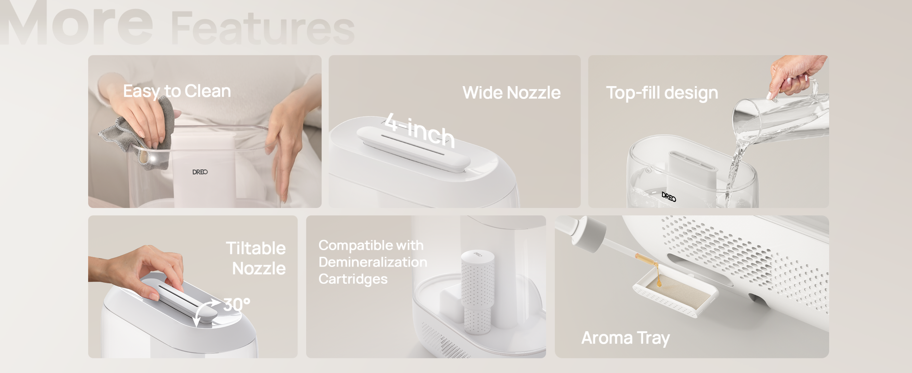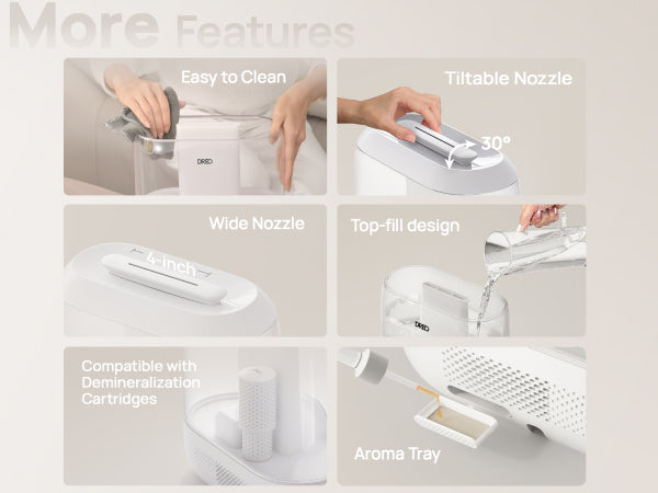 Special Feature: Night Light, Adjustable Humidity Control, Easy Top-Fill, 28dB Ultra-Quiet Operation, Aroma Diffuser