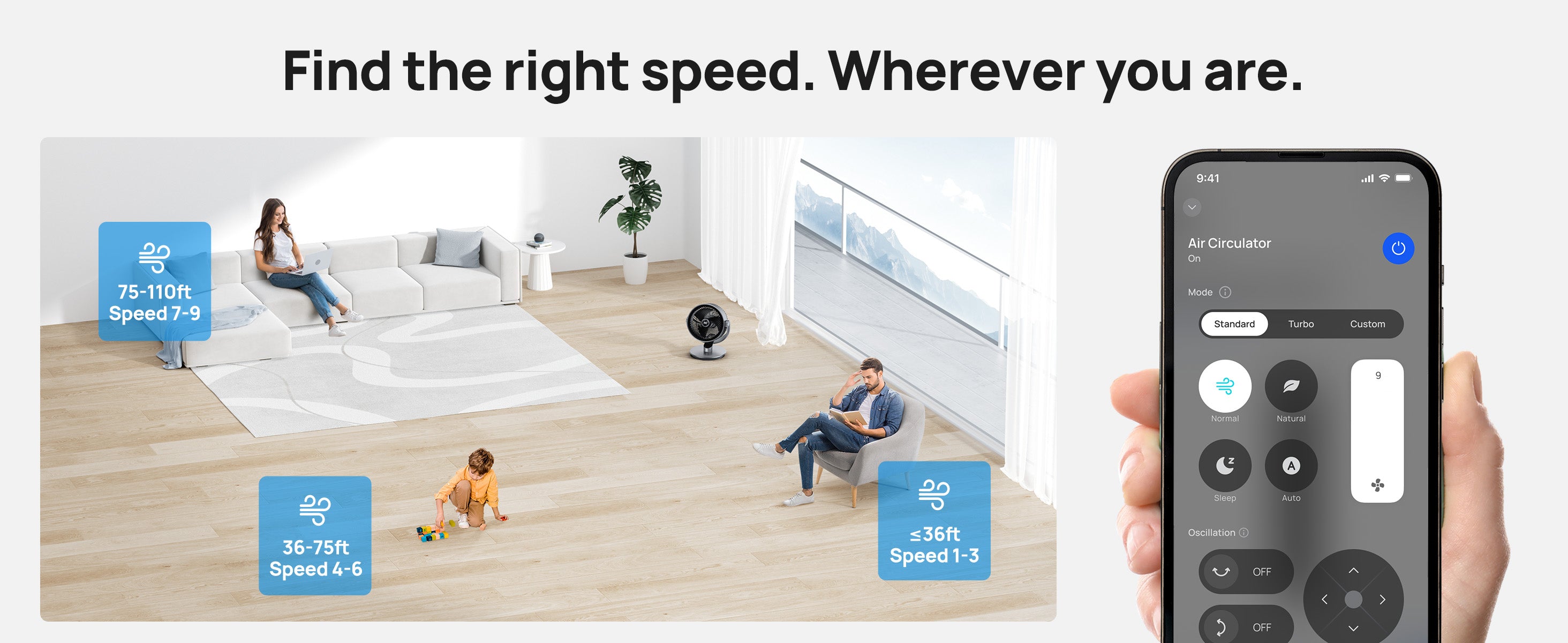 How many fan speed settings does this air circulator have? Can the fan speed change according to the ambient temperature?