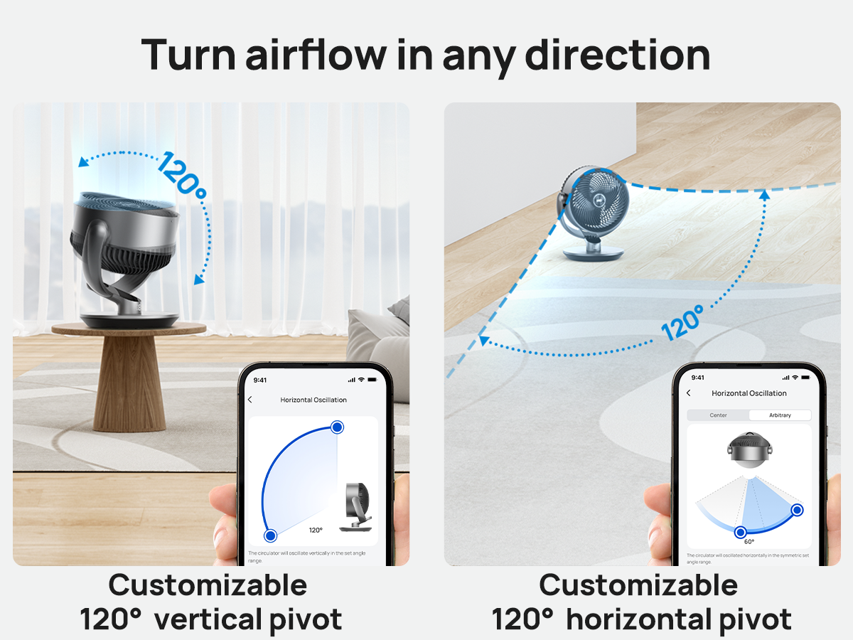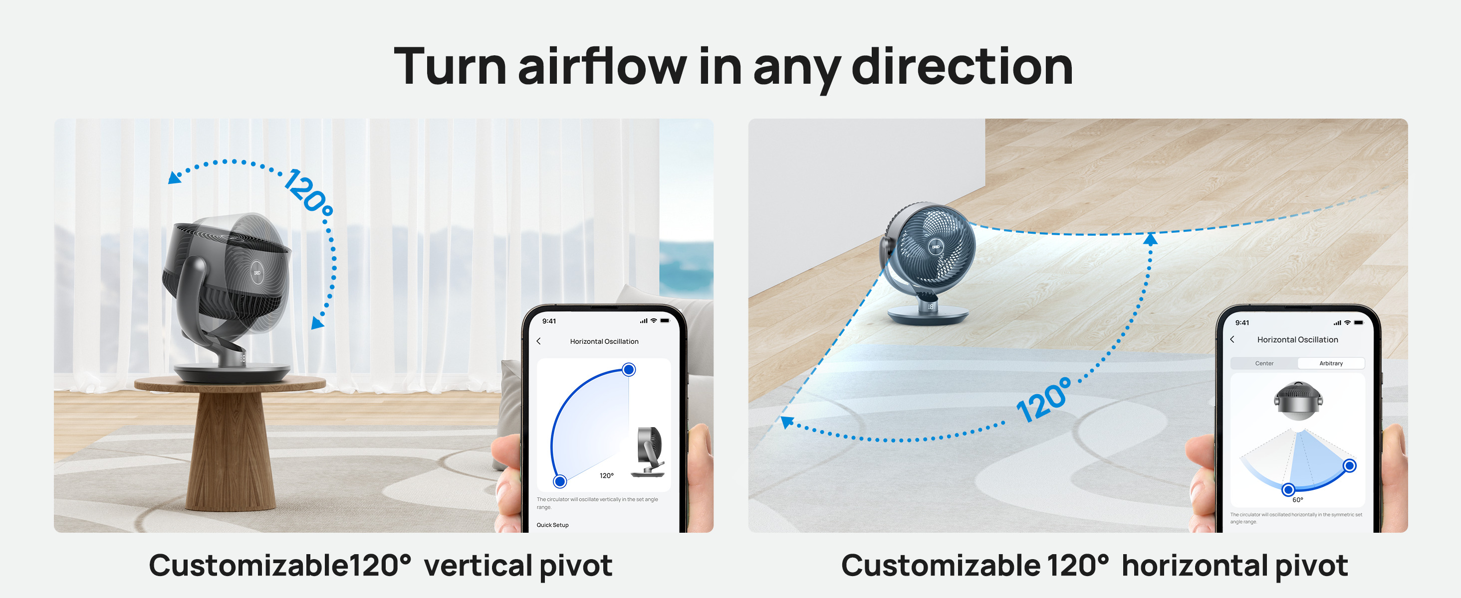 Oscillation: 120° horizontal, 90° vertical