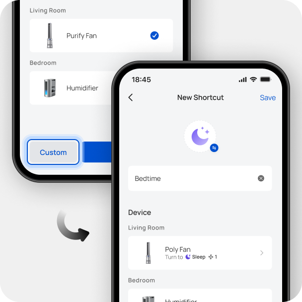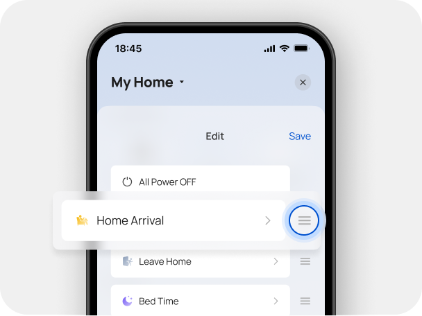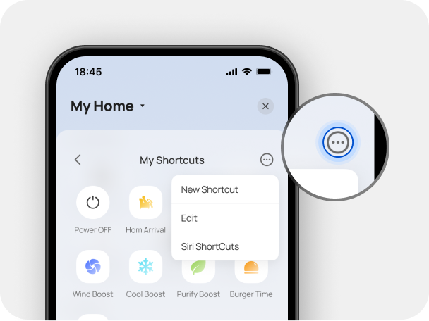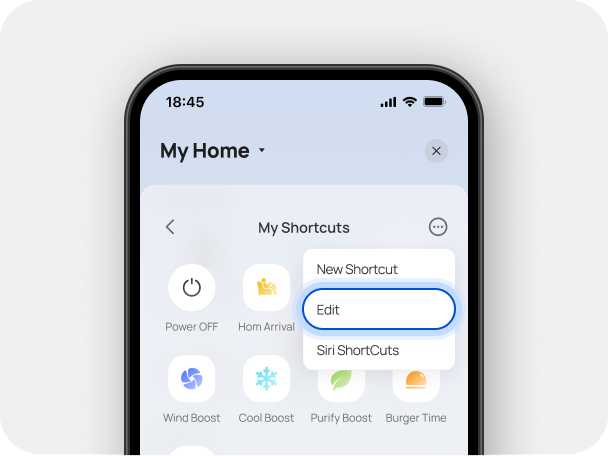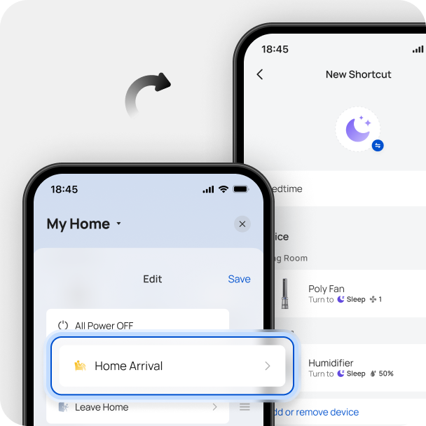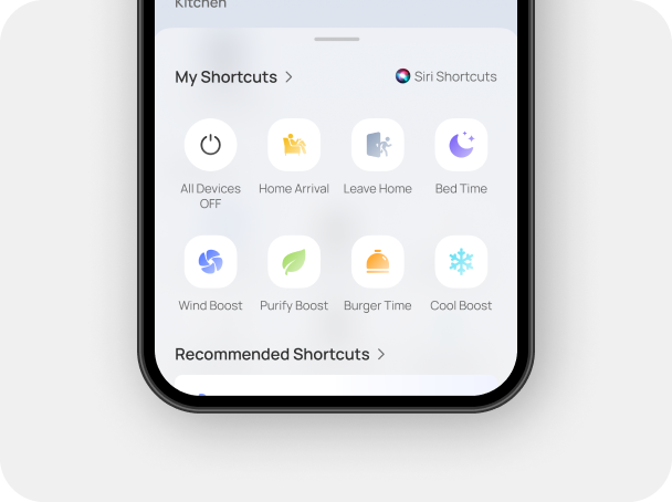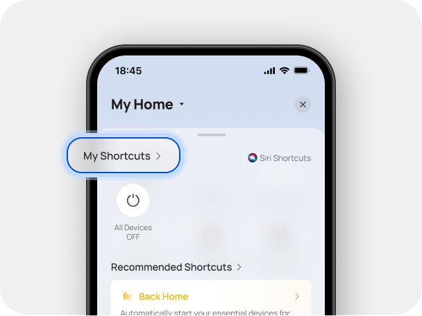 Shortcut is a combination of multiple preset commands. With Shortcuts, users can control more than one device just by one tap.