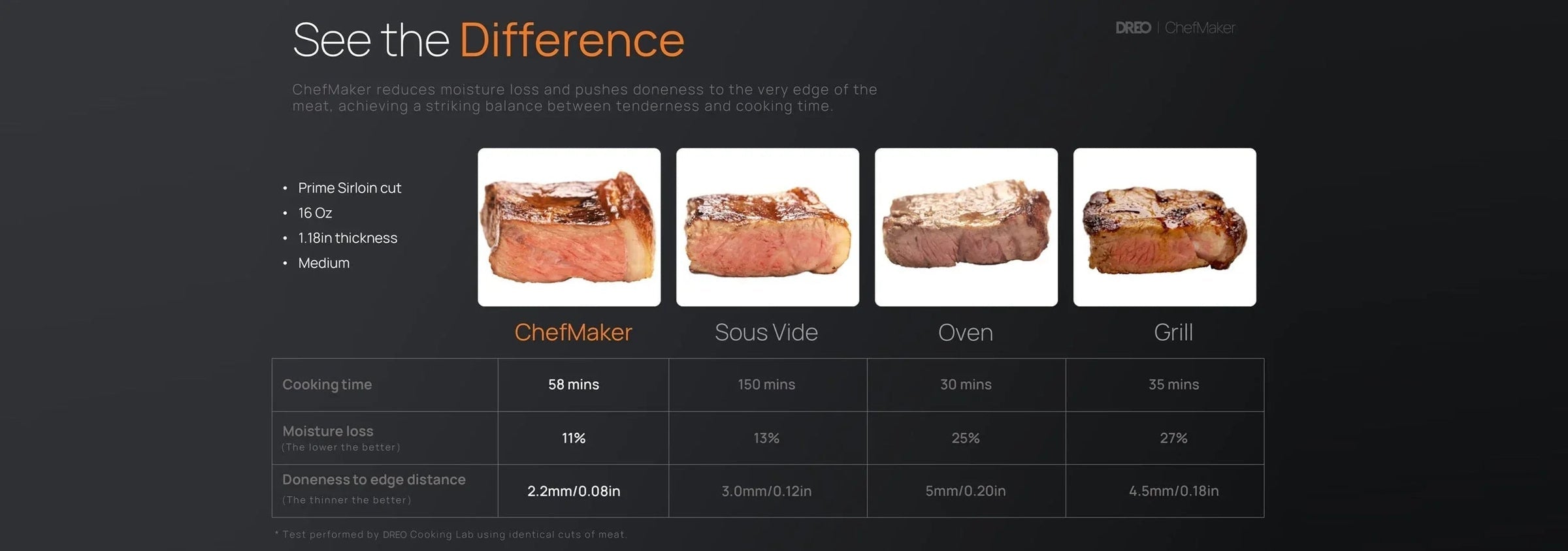 ChefMaker reduces moisture loss and pushes doneness to the very edge of the meat, achieving a striking balance between tenderness and crusty searing.
