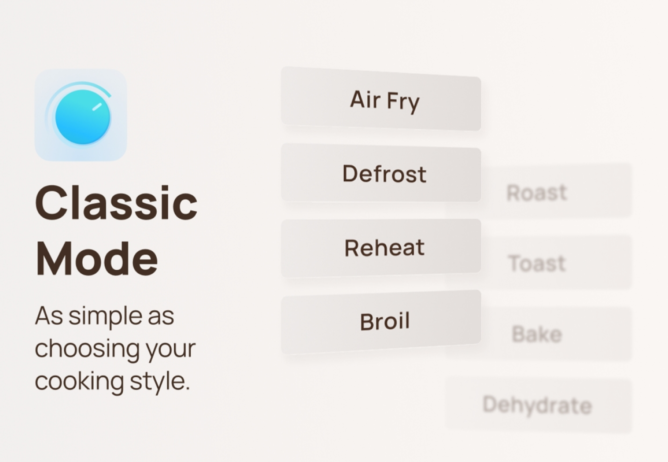 ChefMaker has a mode for every type of Chef. Achieve perfect results with just pressing a button thanks to the ingredient-based presets in Chef Mode. Make fast meals by simply choosing your cooking style in Classic Mode, or take full control and experiment with temperature settings just like master chefs do in Probe Mode.