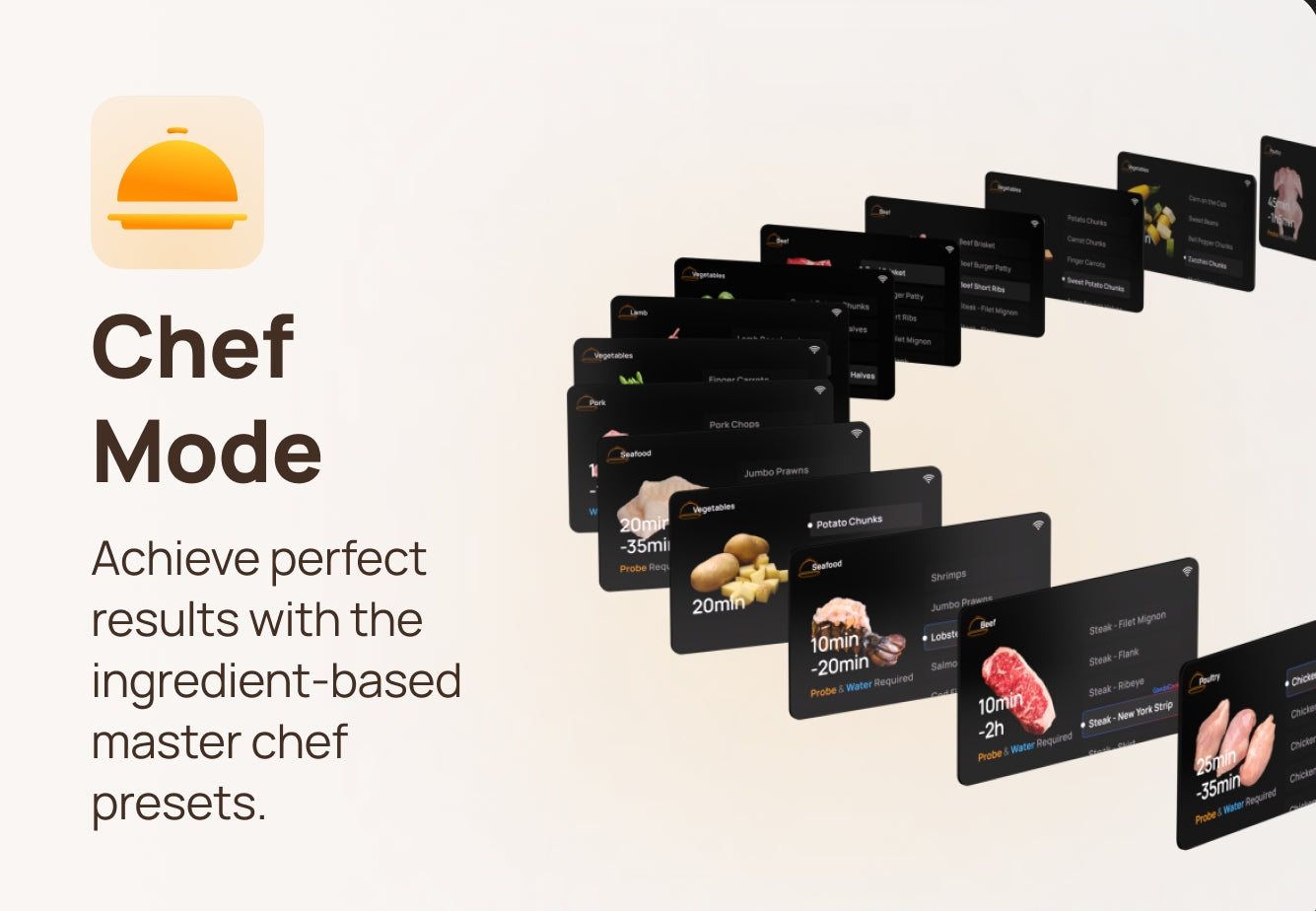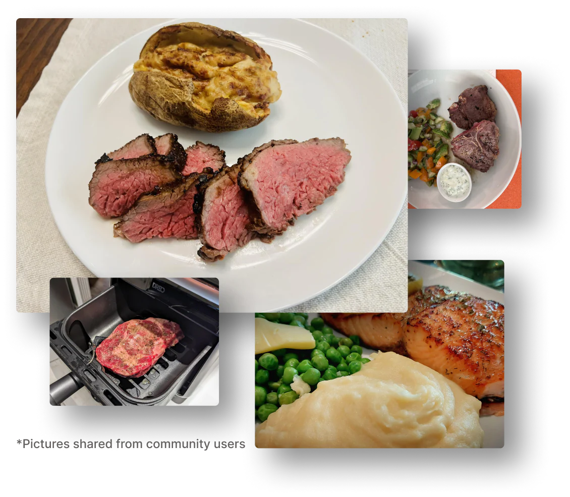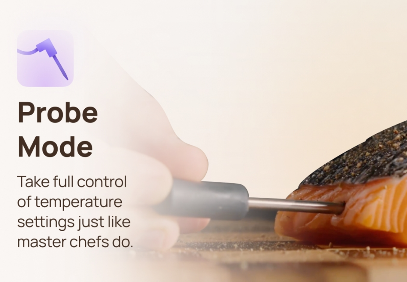 ChefMaker leverages advanced sensing capabilities in the temperature probe to automatically adjust cooking times based on the size of the meat. You can always expect consistent and delicious results, no matter the size or type of food you're cooking.