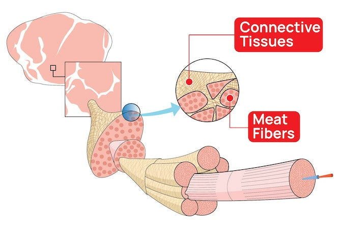 Let's take the meat for example. Cooking meat involves heating and categorizing its biological structure, mainly the meat fibers and connective tissues. Meat fibers should be cooked between 115-150 degrees Fahrenheit, while connective tissues require a temperature above 160 degrees Fahrenheit to soften. Therefore, cooking meat can be a trade-off between having a tender texture or transforming the connective tissues. Balancing these factors is crucial to achieving the desired outcome.