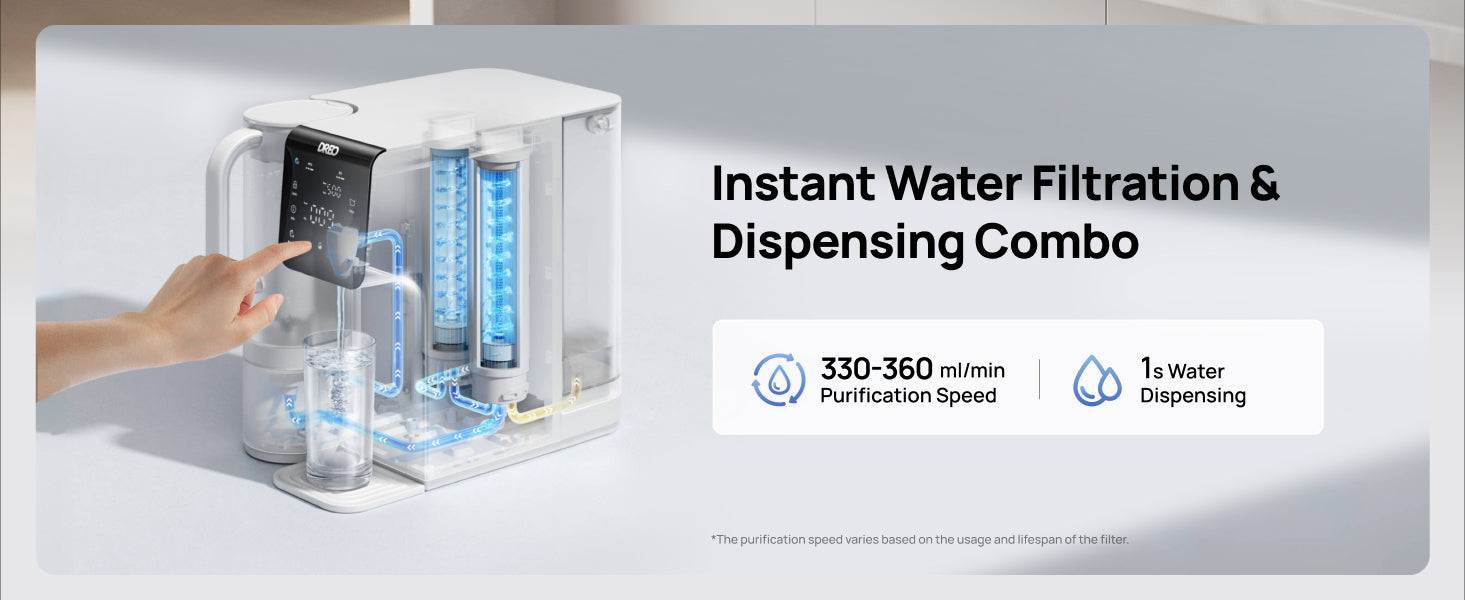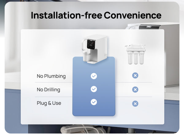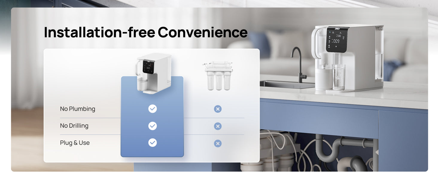 - ๐๐๐จ๐จ๐ก๐-๐๐ง๐๐ ๐๐๐ฉ๐ช๐ฅ ๐๐ฃ๐ ๐๐จ๐: No tools, no hassle. Simply plug in, flush twice, and your water purifier is ready to go. Whether itโs for your kitchen, living room, or office, it fits perfectly into any space without complicated installation or plumbing