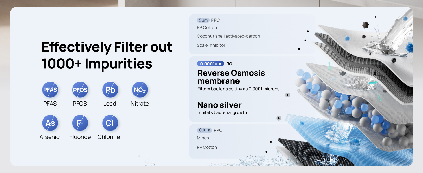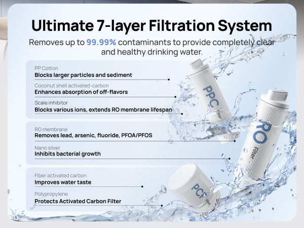 - ๐๐ก๐ฉ๐๐ข๐๐ฉ๐ ๐๐๐ก๐ฉ๐ง๐๐ฉ๐๐ค๐ฃ ๐๐ฎ๐จ๐ฉ๐๐ข: Our water filter features an advanced 7-layer filtration system that removes up to 99.9999% of contaminants. It filters out over 1,000 impurities from stubborn rust to harmful fluoride, ensuring every drop you drink is pure