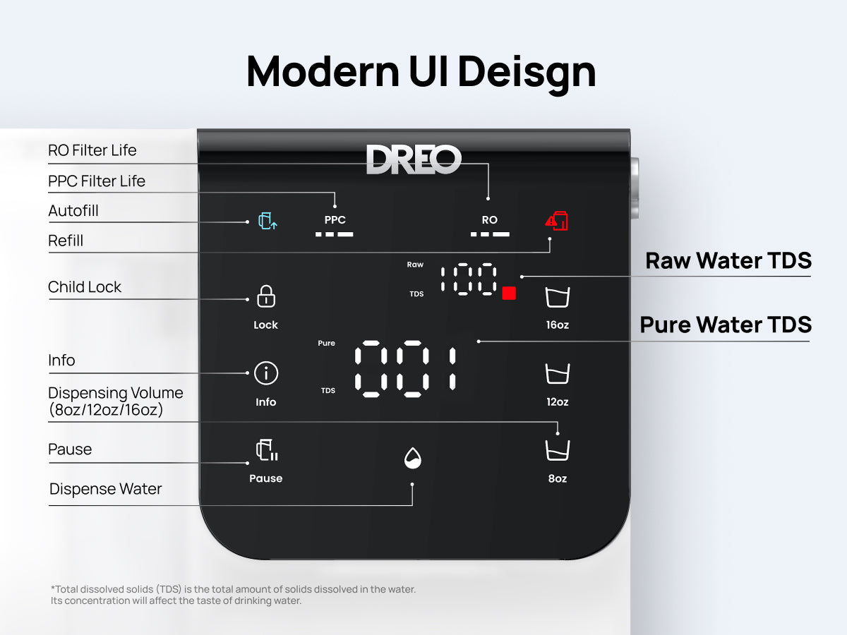 - ๐๐๐๐ก-๐ฉ๐๐ข๐ ๐๐ค๐ฃ๐๐ฉ๐ค๐ง๐๐ฃ๐: The smart display keeps you updated on filter life for prompt replacement. The real-time TDS display lets you see the water purity at a glance. Features like auto flushing and child lock make water purification smarter and safer