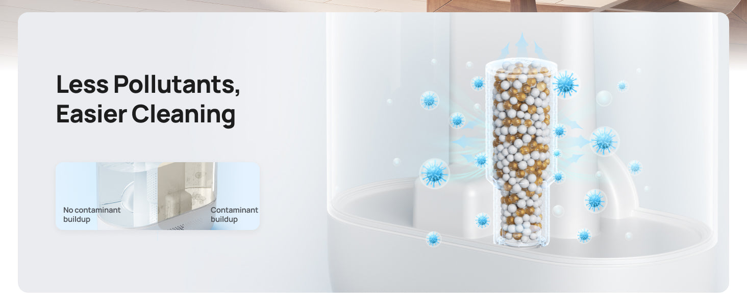 - 𝗟𝗲𝘀𝘀 𝗣𝗼𝗹𝗹𝘂𝘁𝗮𝗻𝘁𝘀, 𝗘𝗮𝘀𝗶𝗲𝗿 𝗖𝗹𝗲𝗮𝗻𝗶𝗻𝗴: Reduce the amount of contaminant buildup inside the humidifier, helping you clean easier and extend your humidifier lifespan.