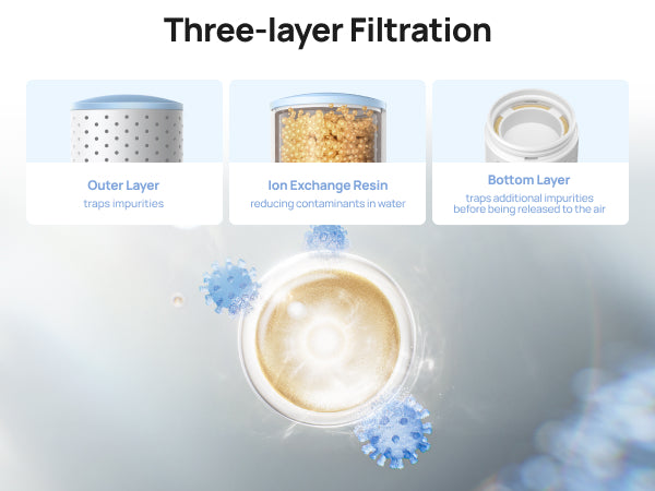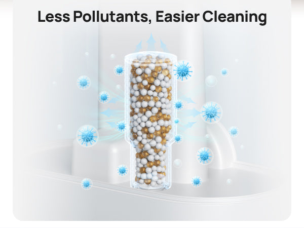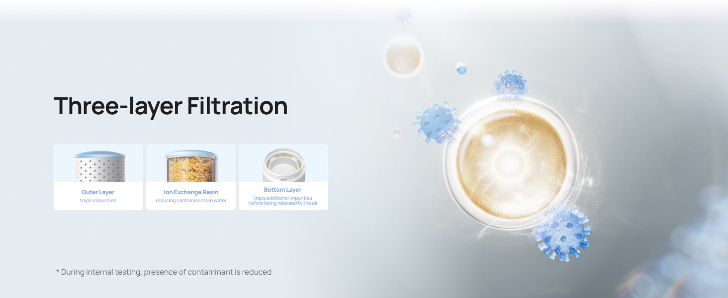 - 𝗣𝘂𝗿𝗶𝗳𝘆 𝗲𝘃𝗲𝗿𝘆 𝗱𝗿𝗼𝗽: The three-layer cleaning system and the large silver ion pellets have a higher contact surface, helping clean more water before it is released into the air.