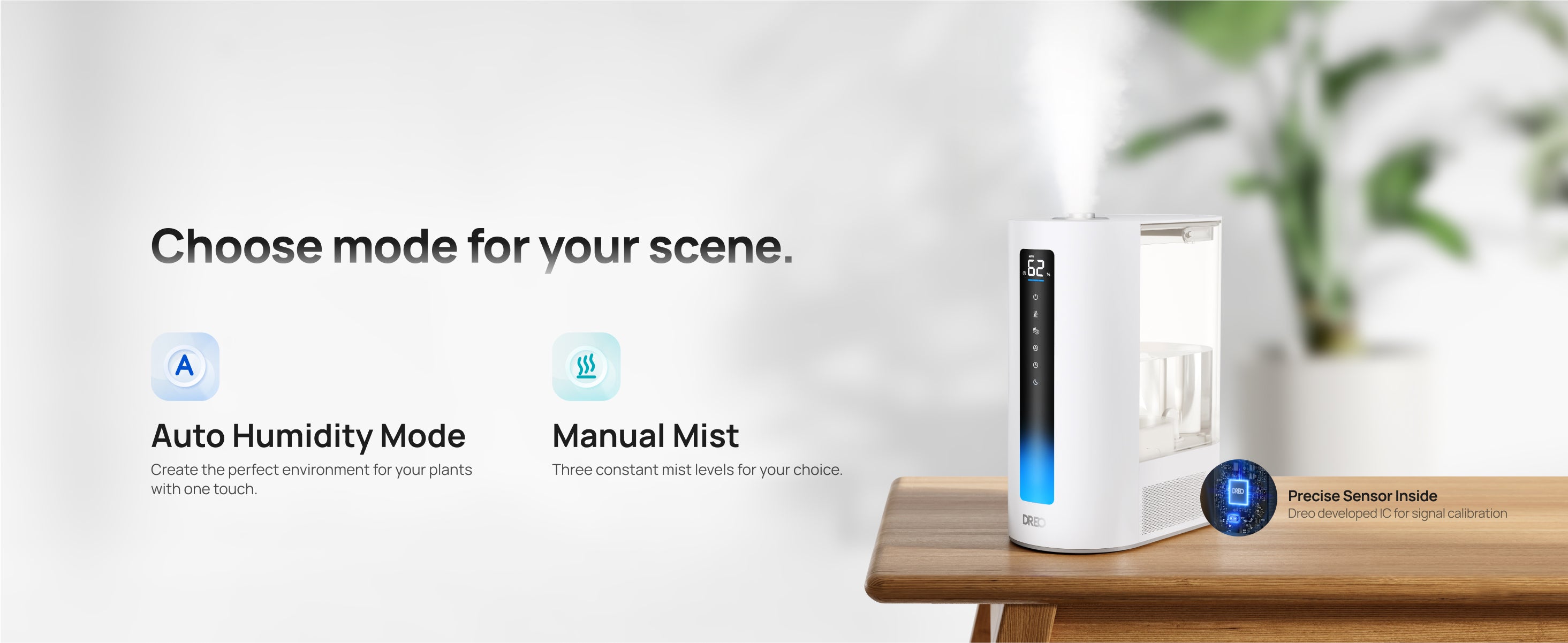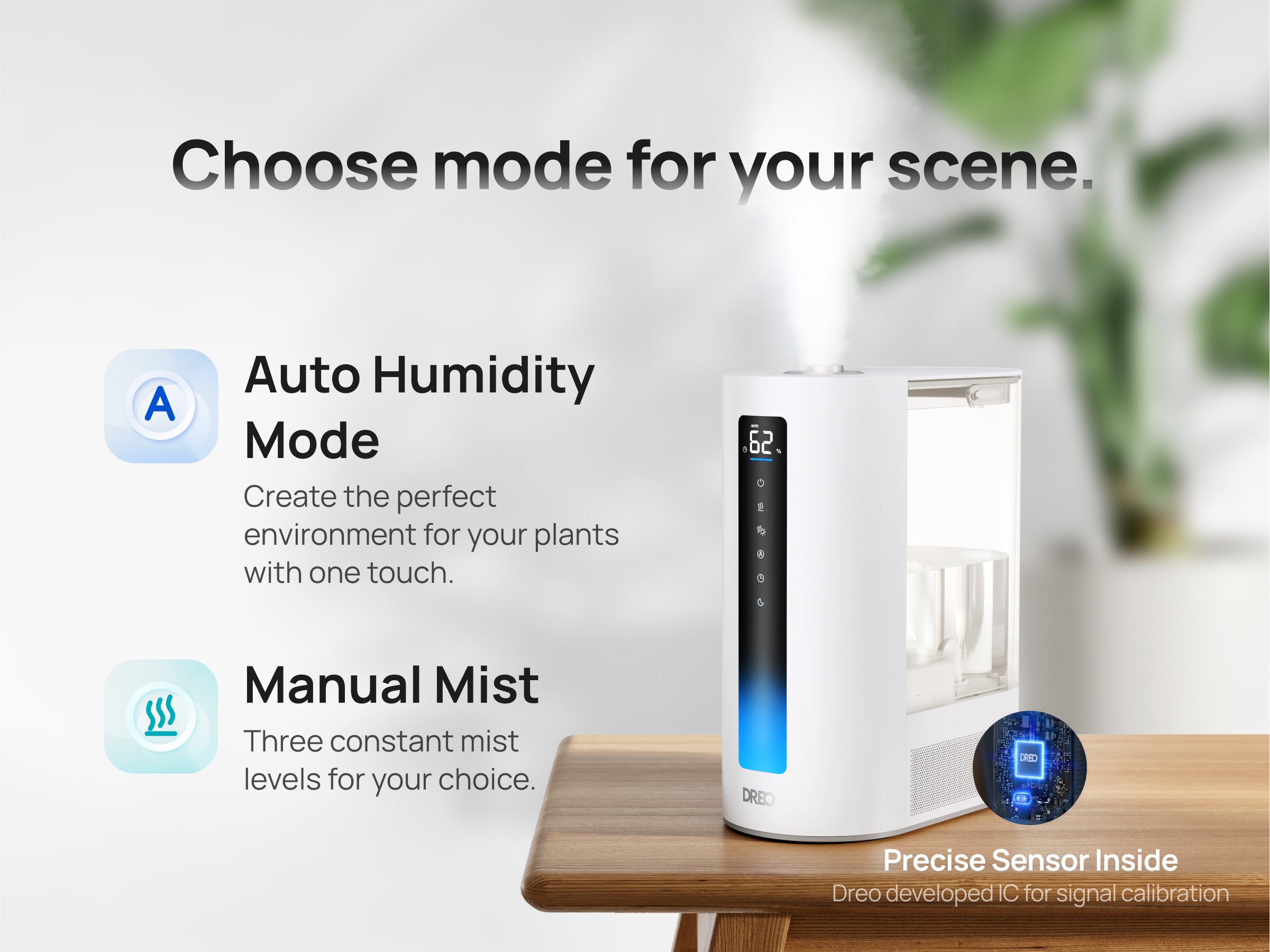 3. Switch to Auto Mode to adjust the mist level based on your room’s humidity.