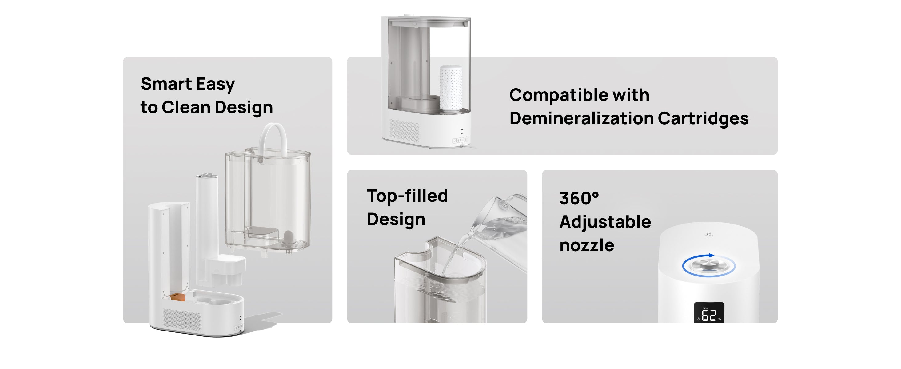 3. Please do not place the humidifier directly on the carpet, as this will easily lead to clogging of the humidifier air inlet holes.