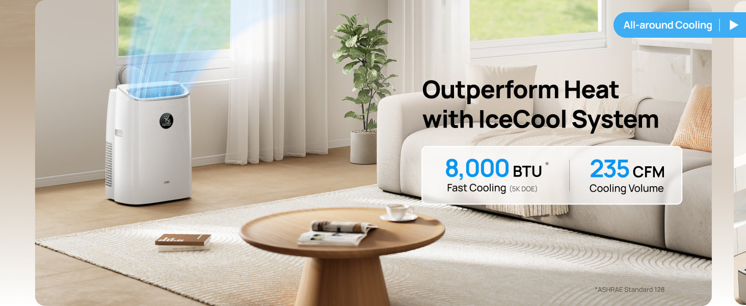 Cooling Capacity: 7,200 BTU (DOE) / 11,000 BTU (ASHRAE)
