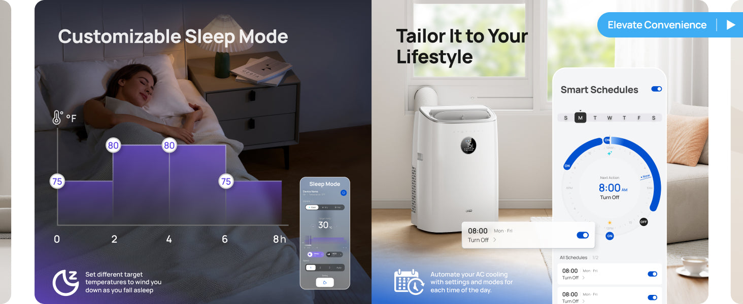 Oscillation: 50–90 Degrees Vertical Auto Swing