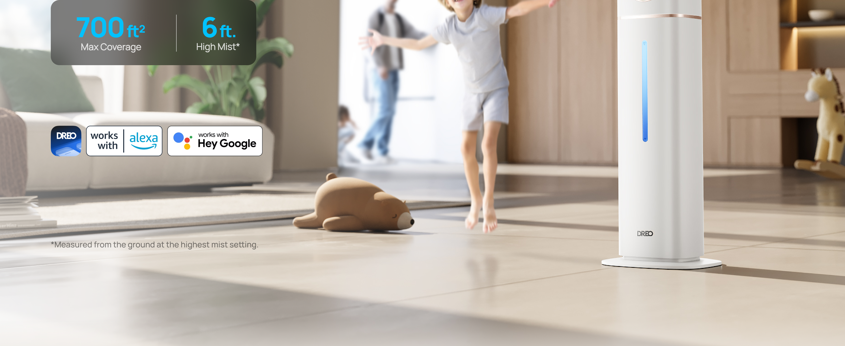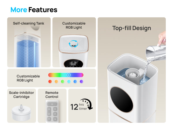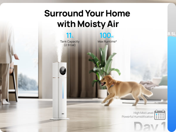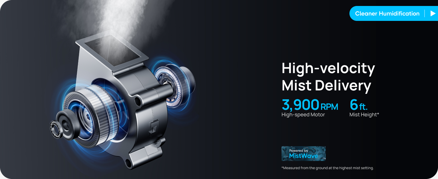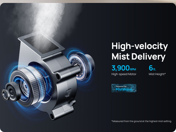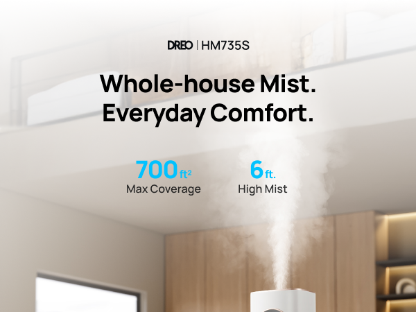 - Covers 700 ft², delivering mist over 6 ft. high for rapid, even humidity.