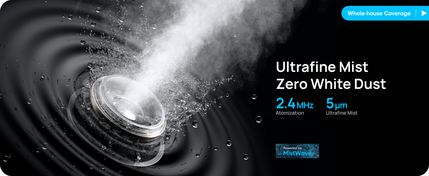- 5μm ultrafine mist with 2.4MHz atomization, no white dust.