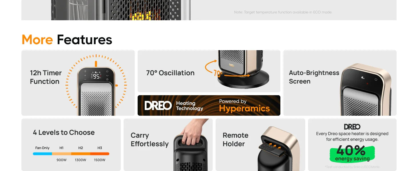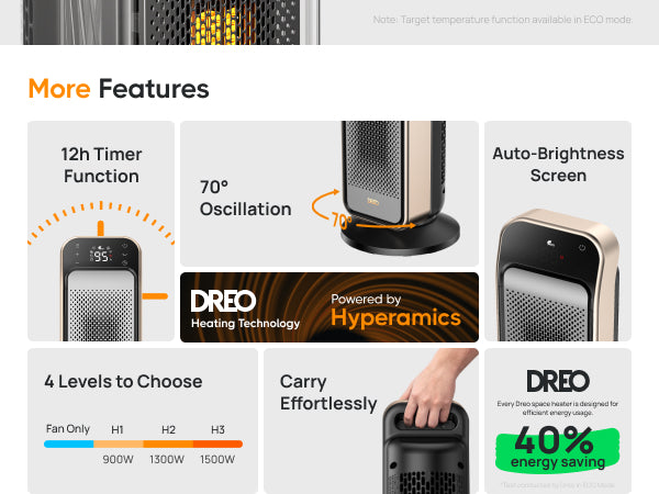 Mode Options: H1/H2/H3/ECO/Fan Only