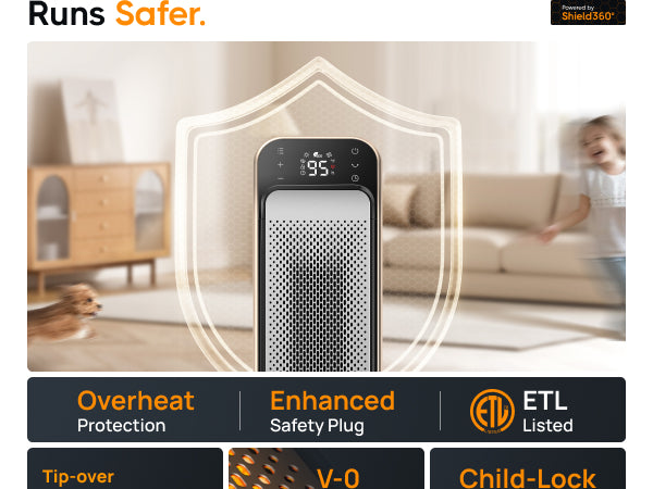 3. When the ambient temperature is above 50°C / 122°F, the heater will stop heating and the overheat alarm will be triggered with malfunction code "FF" on LED display and beeps. Please unplug it from the power source and power it on again when the ambient temperature drops below 50°C / 122°F
