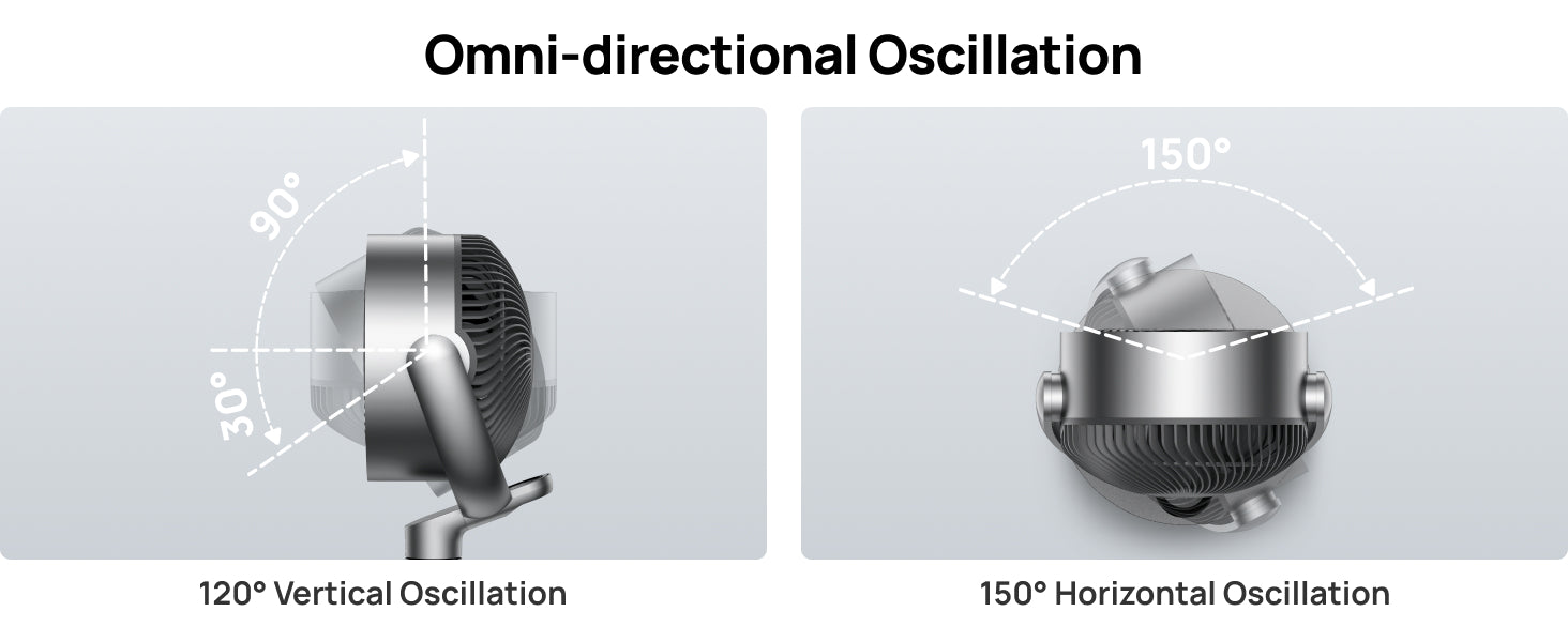 Oscillation: 150˚ horizontal and 120˚ vertical