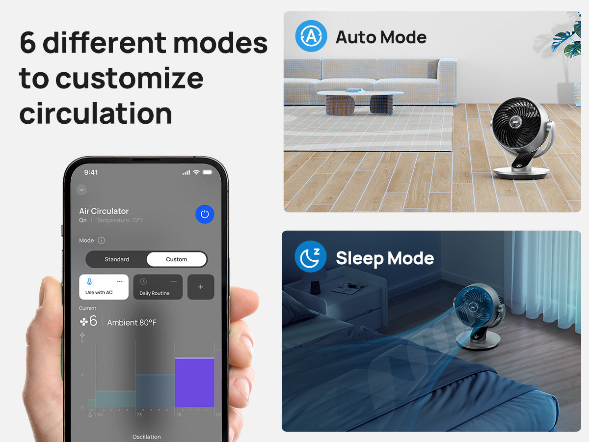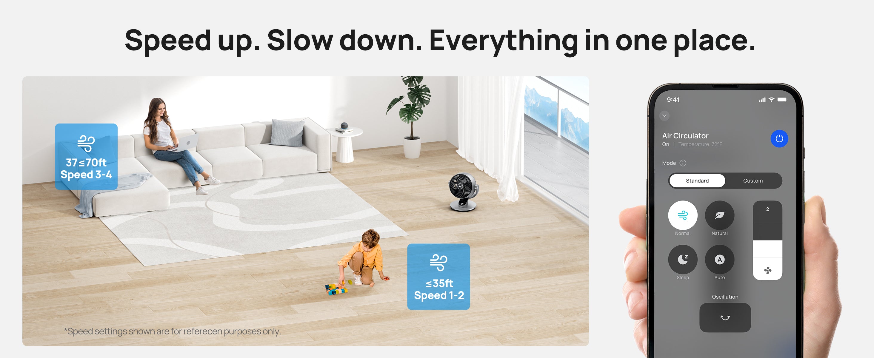 How many fan speed settings does this air circulator have? Can the fan speed change according to the ambient temperature?